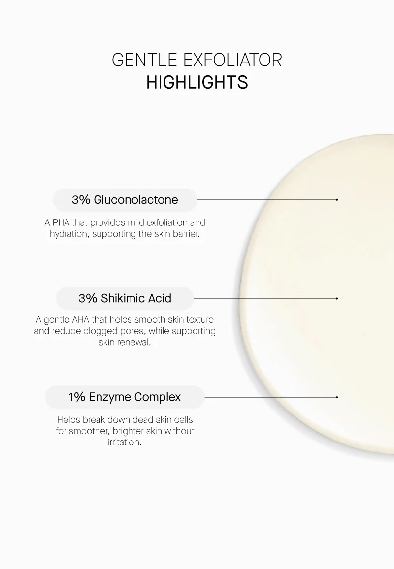 Transformoni lëkurën tuaj butësisht por në mënyrë efektive me këtë eksfoliant të lëngshëm që kombinon AHA, PHA dhe një kompleks enzimatik për të përmirësuar shkëlqimin, strukturën, tonin dhe shenjat e plakjes pa shkaktuar irritim.