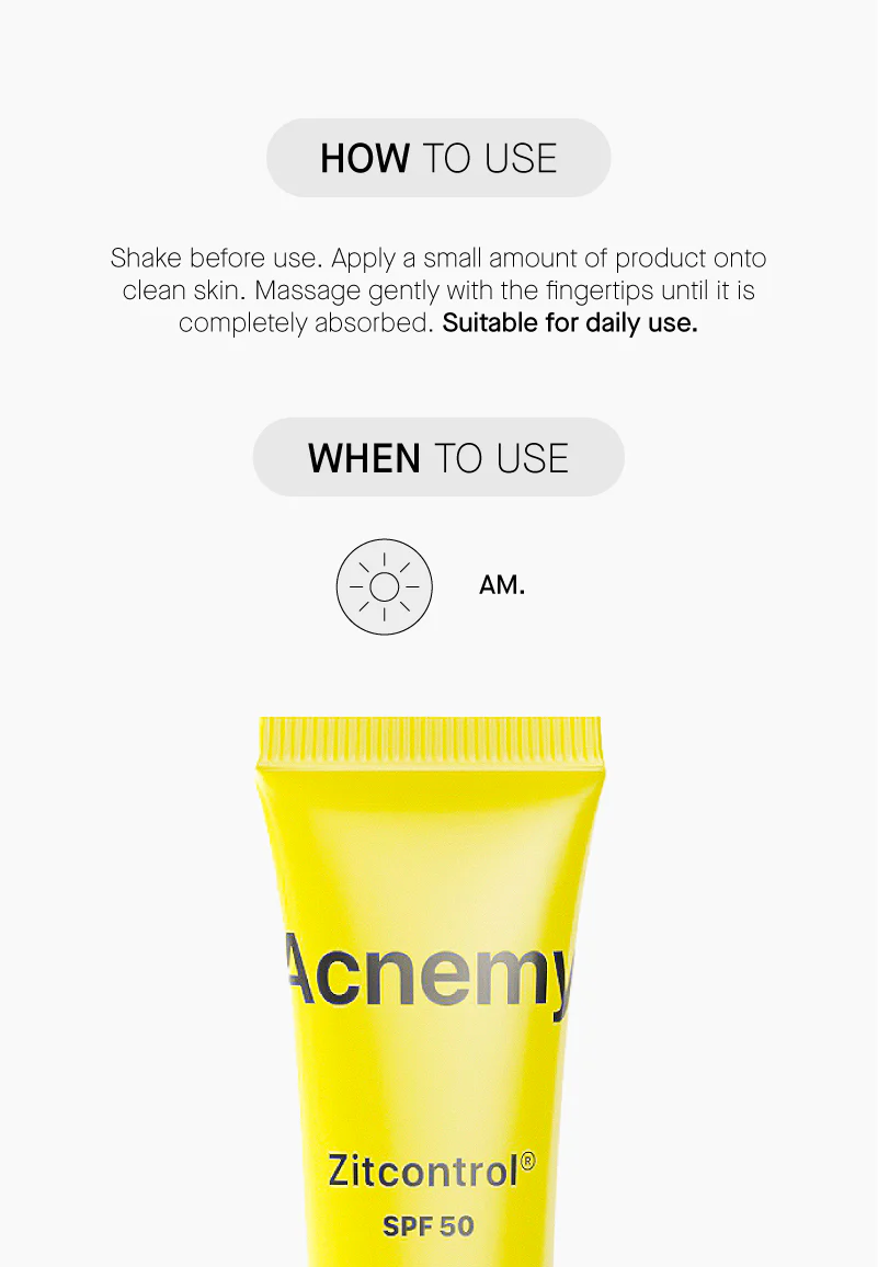 Një produkt i domosdoshëm për përditshmërinë që ju mbron nga dielli dhe ju ndihmon të luftoni aknet. Zitcontrol SPF50®, një krem i lehtë me SPF 50, formuluar si një hibrid mineral-kimik që ofron mbrojtje kundër rrezeve UVA dhe UVB për të parandaluar dëmtimin e diellit dhe plakjen e lëkurës, duke e bërë atë perfekt për rutinën tuaj të përditshme të kujdesit të lëkurës.
